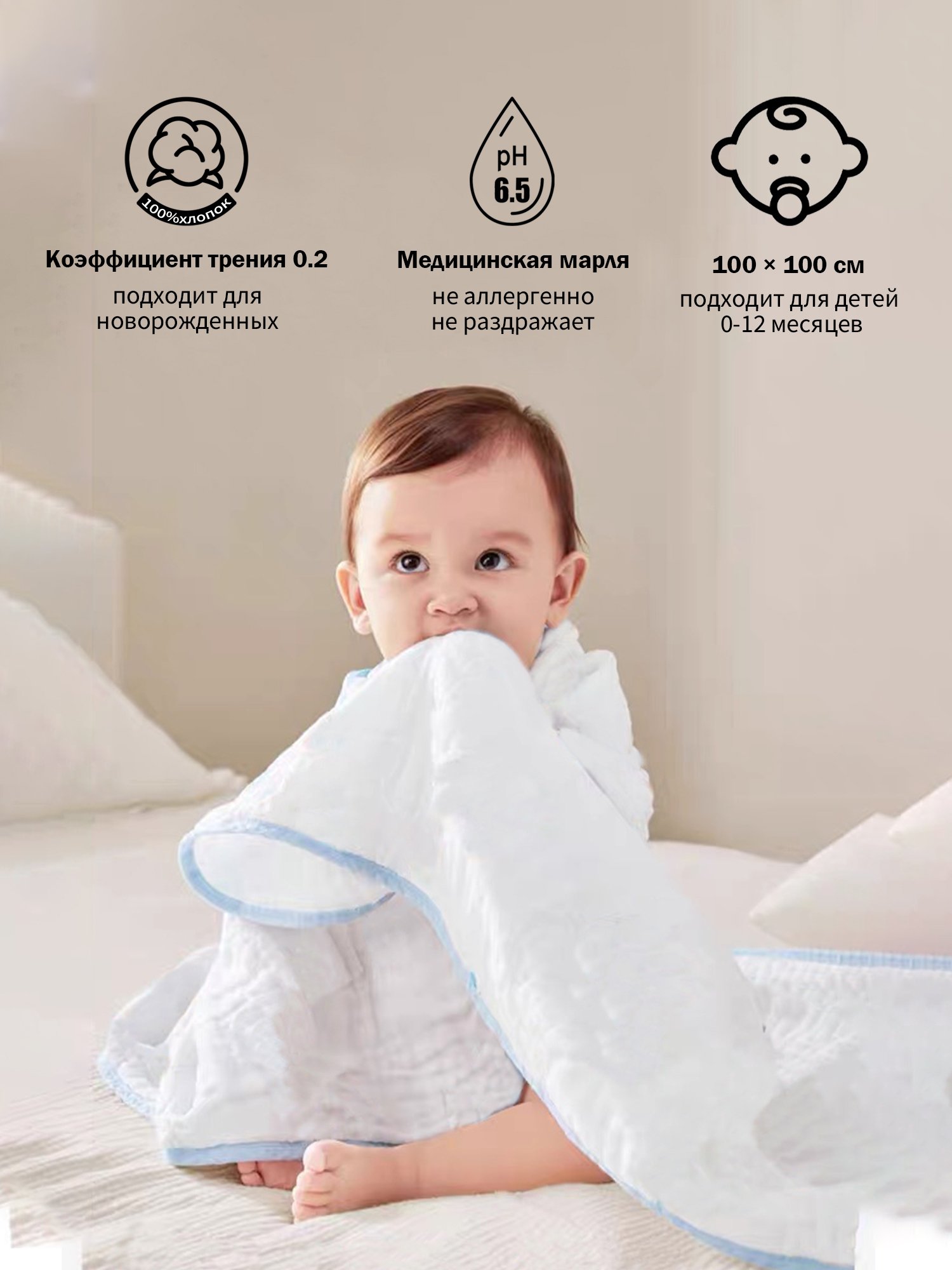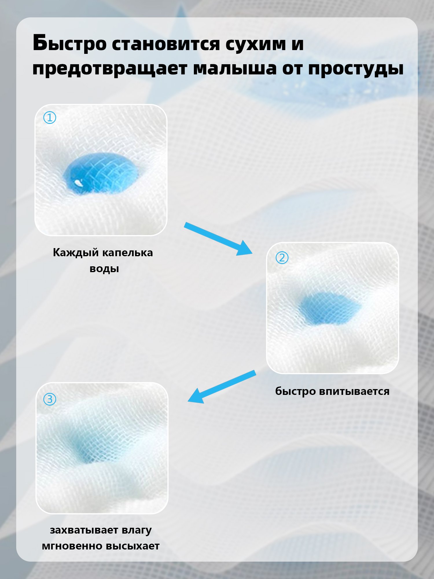 ✔ Натуральный состав: 100% хлопковая марля – дышащая, гипоаллергенная, нежно заботится о коже