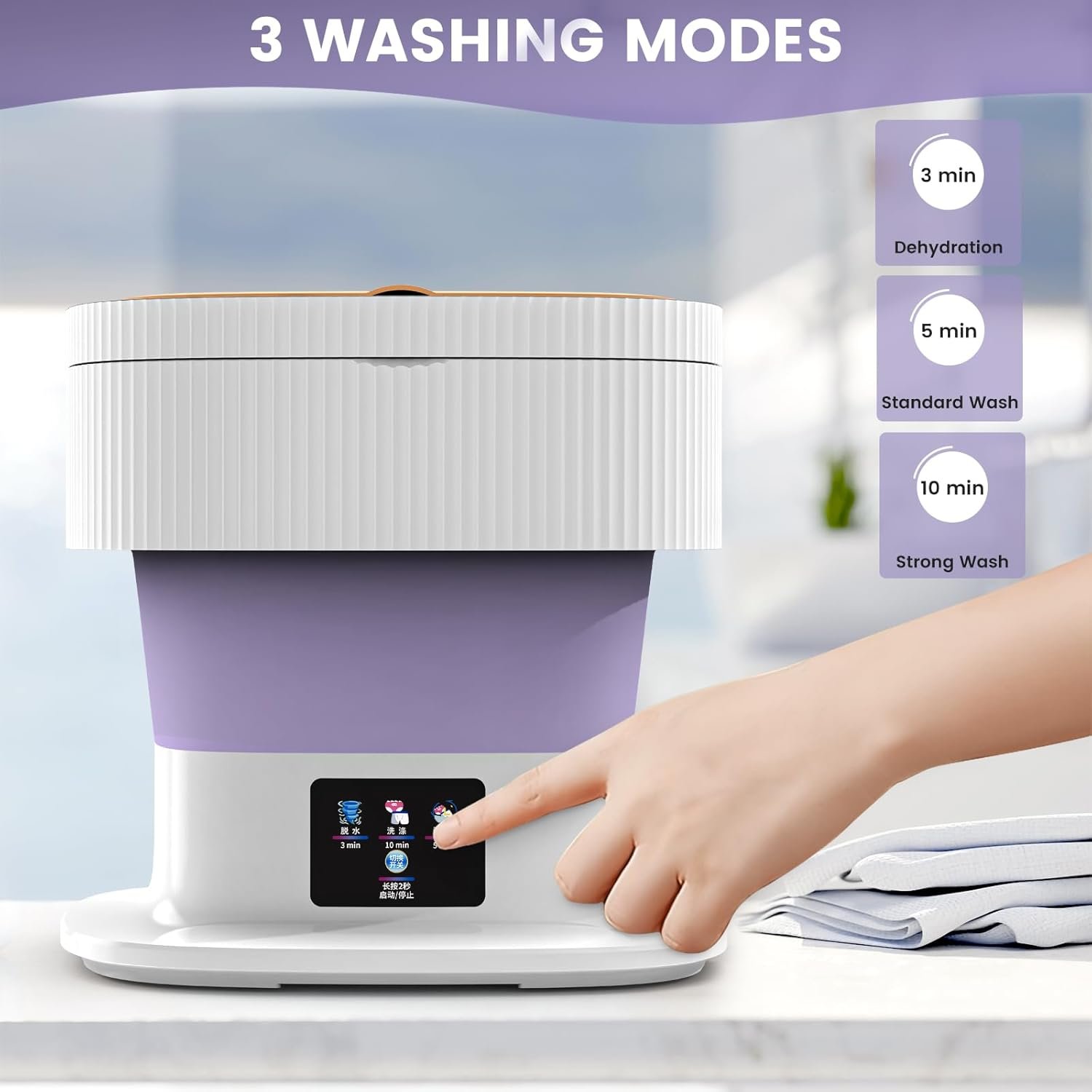 Эта усовершенствованная компактная стиральная машина стала еще практичнее. Несмотря на миниатюрные размеры в сложенном виде, она обладает впечатляющей вместимостью в развернутом состоянии. Легко справляется со стиркой нижнего белья, носков и детской одежды, полностью удовлетворяя потребности в чистоте во время семейных или индивидуальных поездок. Ваша одежда всегда будет свежей и чистой!