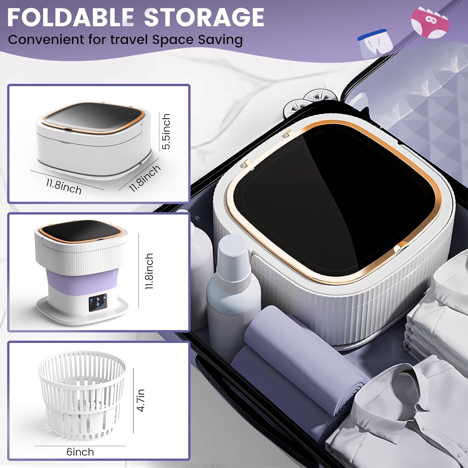 Новая усовершенствованная портативная стиральная машина отличается ультракомпактным складным дизайном. Ее легко сложить, и она идеально поместится в угол чемодана. Будь то короткая поездка или длительное путешествие, она станет вашим надежным спутником, решая проблему стирки одежды в дороге.